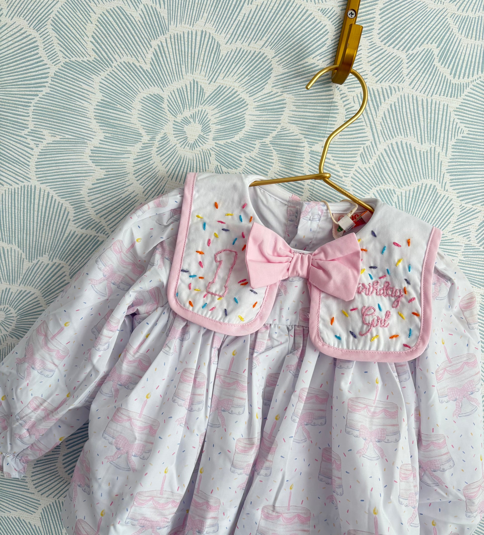 🎀 A pink bow and sprinkle-trimmed yoke for an extra festive flair.